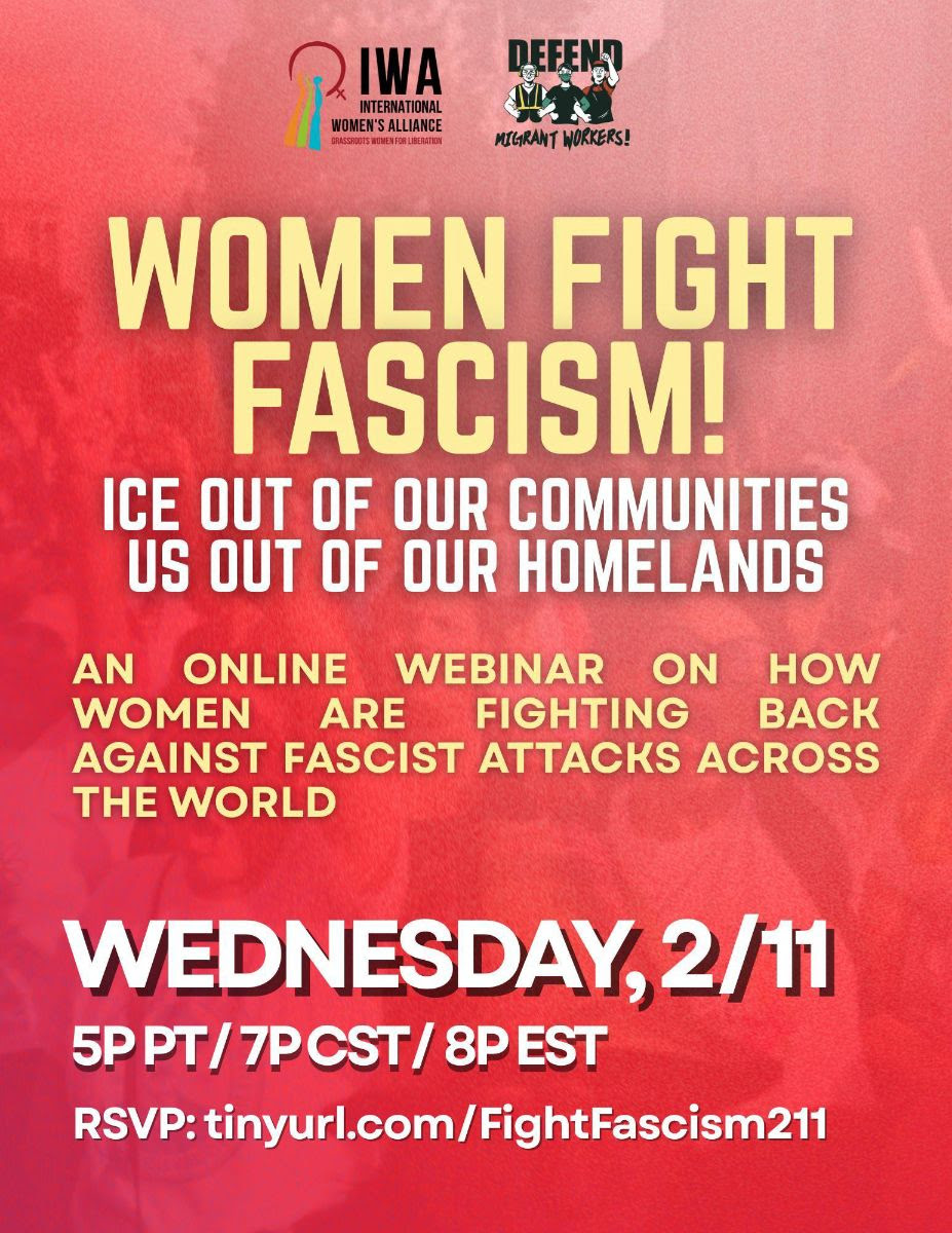Wednesday, February 11, 7pm CT, Register: https://tinyurl.com/FightFascism211 Under the banner of the Women Fight Fascism Campaign, IWA-US will host an educational webinar to amplify the struggles and bring attention to specific cases of migrant women and activists resisting escalating fascist attacks across the U.S. from MN to TN, to our Motherlands! We will share the organizing efforts…