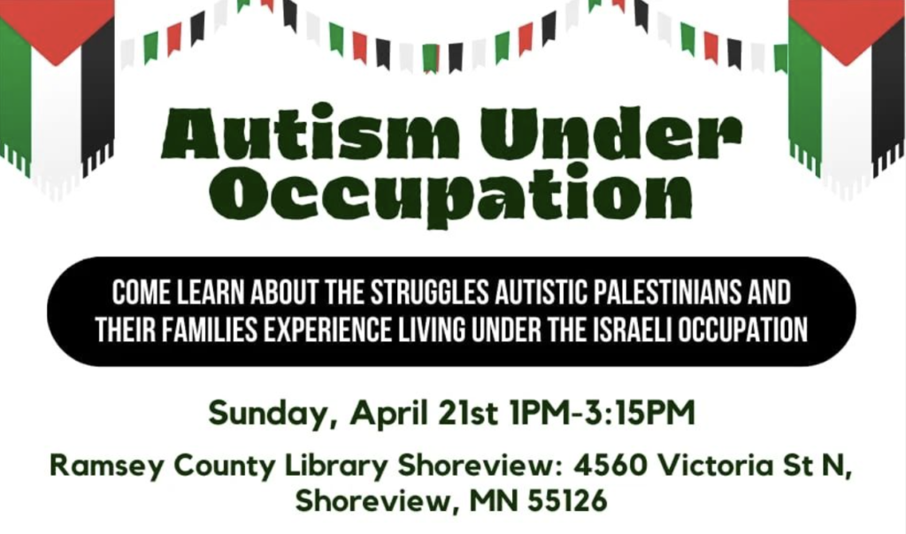 We invite you to join us on Sunday, April 21st, to learn about the impact of the Israeli occupation on Autistic Palestinians and their families.