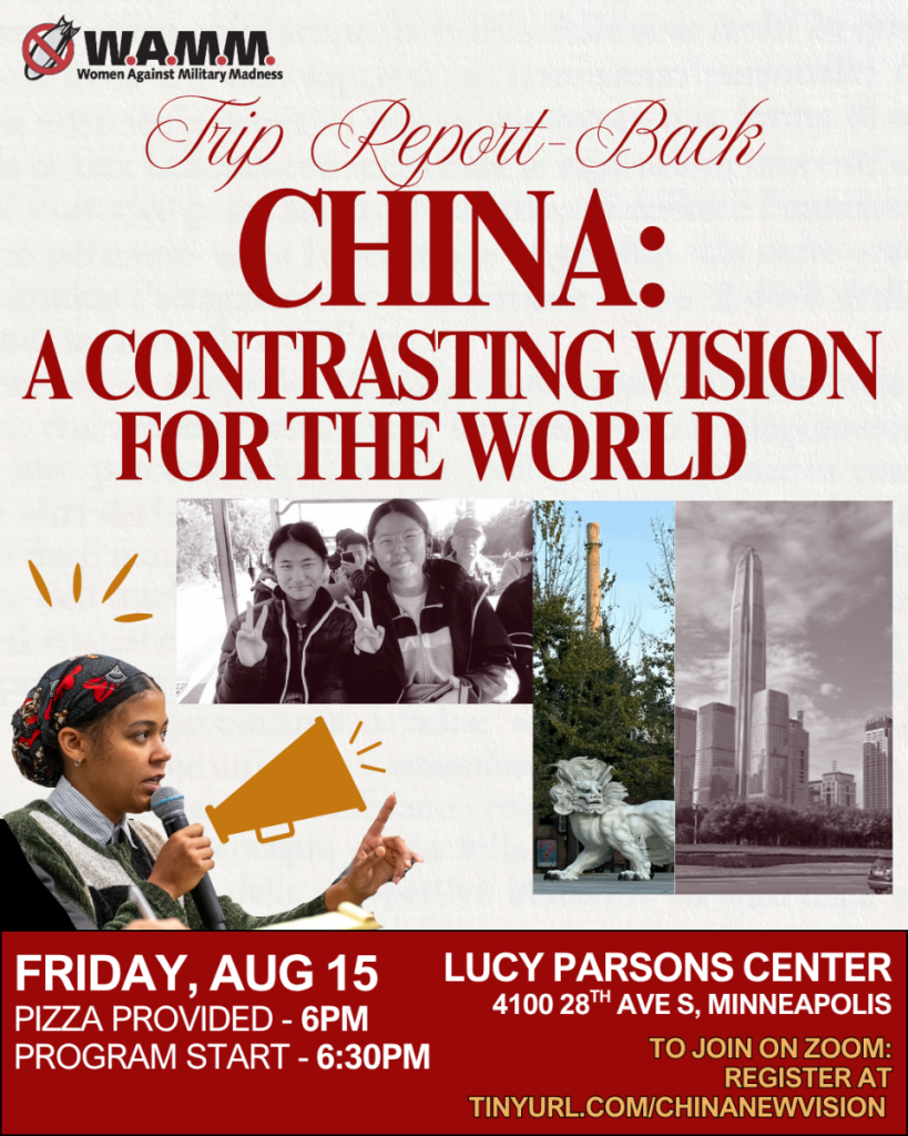Because of China’s growing influence and power in the world, it is being seriously and dangerously threatened militarily and economically by the U.S. Join us to hear from Sydney Loving who participated in the 2025 Friends of Socialist China  delegation. Syd will share her experiences and reflections on China’s ground breaking achievements which contradict the propaganda and disinformation we’re hearing in the media and from officials in Washington.