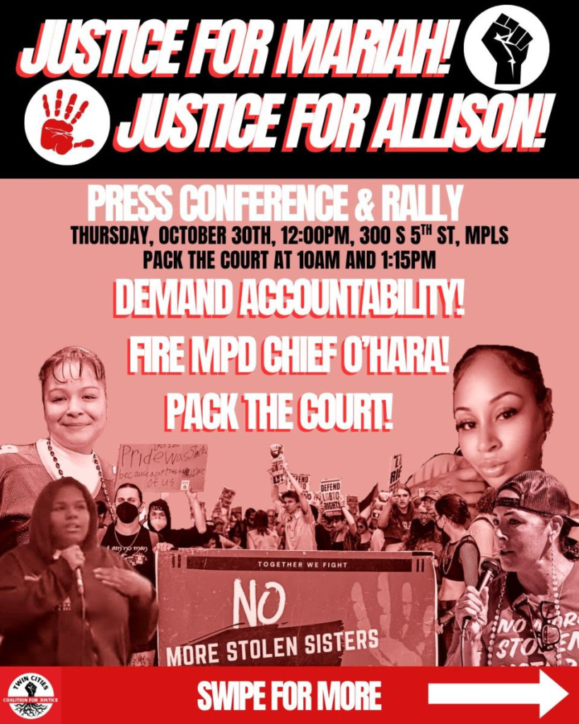 Together, with the families of Allison Lussier and Mariah Samuels, The Twin Cities Coalition for Justice makes the following demands: