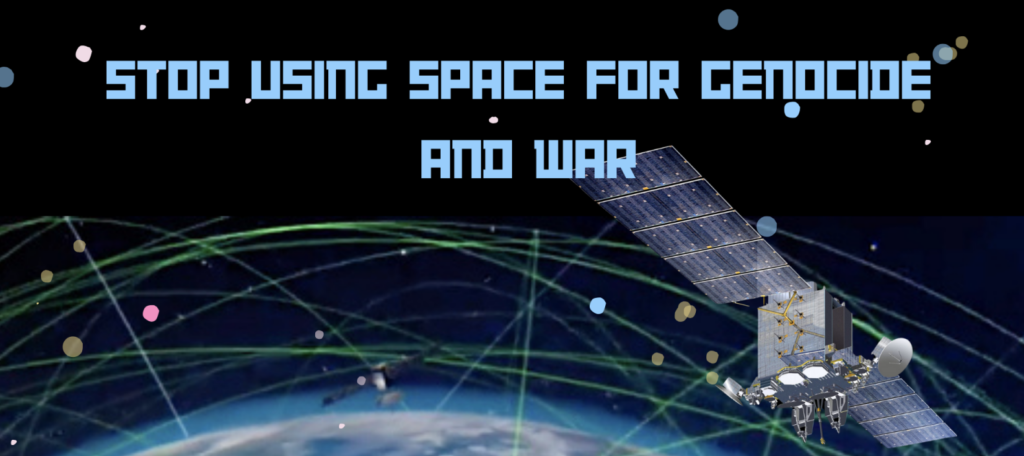 Saturday, October 5 – Saturday, October 12, 2024Stop Using Space for Genocide and WarSpace is now key to fighting global wars as space tech coordiantes all war on the ground, in the sea and in the air. The gap between the commercial and military sectors is purposely being ‘blurred’ as the US-NATO attempt to fill up remaining orbital parking slots for satellites before China and Russia can put more satellites in Lower Earth Orbit (LEO).