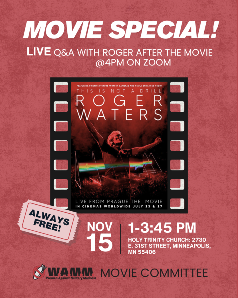 Film cosponsors are Women Against Military Madness and Veterans For Peace Chapter 27, with thanks to Holy Trinity Church for their support.