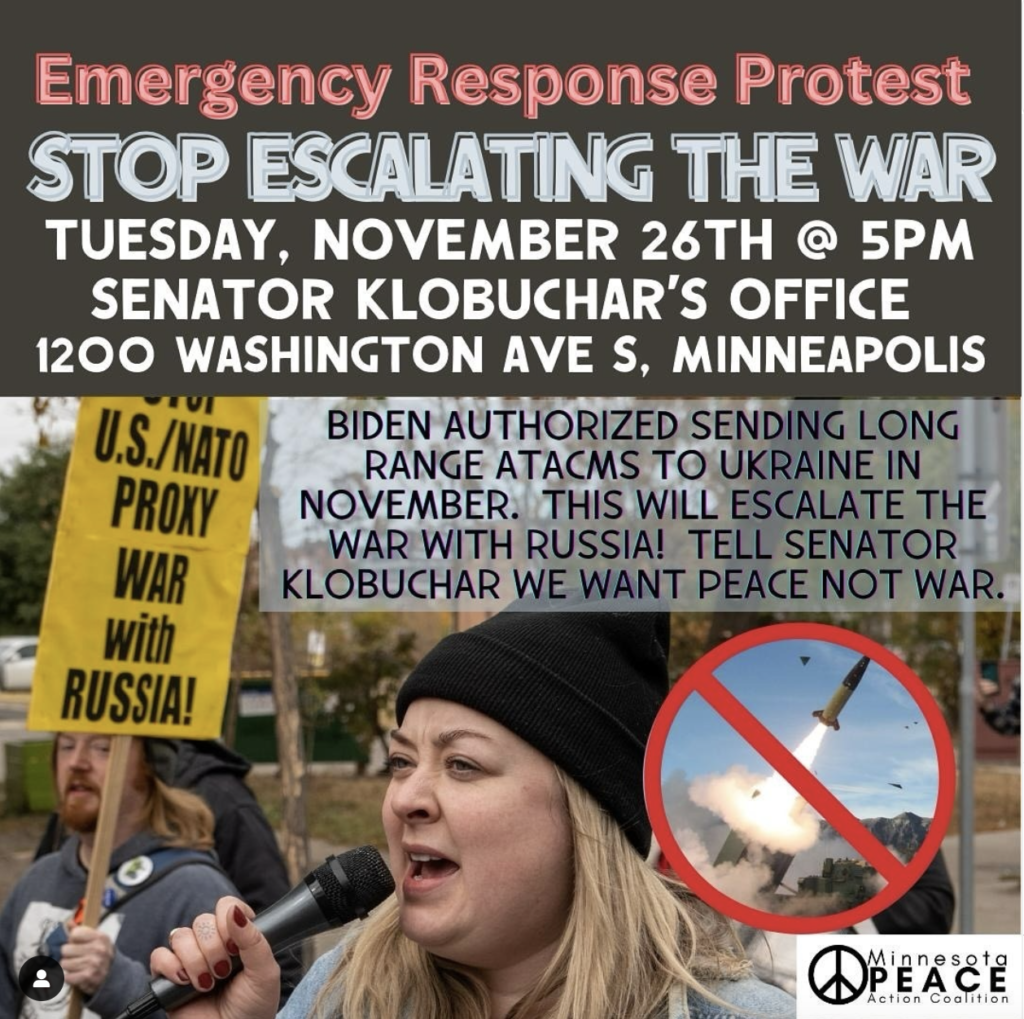 Join the Minnesota Peace Action Coalition as we demand: we want peace, not war!