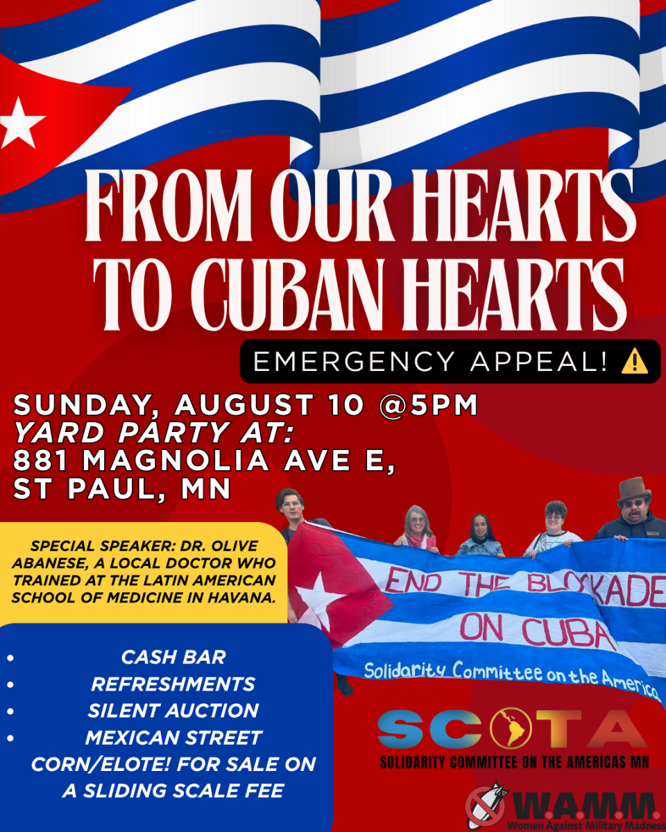 DEMAND! Senator Klobuchar: Take Cuba off the U.S. State Sponsors of Terrorism List! Protest at Klobuchar’s office! Thursday, April 18, 2024, 4:00 PM to 5:00 pm, 1200 Washington Avenue South Minneapolis, MN 55415 We are gathering at Senator Amy Klobuchar's office to call on her to advocate with President Biden to take Cuba off the…