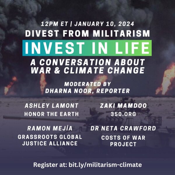 Wednesday, January 10, 2024, at 11:00 am, Online event, click here to register Organized by 350 US, Sponsored by WAMM EMMAE Committee Did you know that militarism and war are…