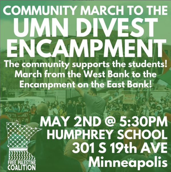 🇵🇸✊The community supports the students!✊🇵🇸 March from the West Bank to the Encampment on the East Bank! This action was planned in consultation with the student leaders in the UMNDIVEST…
