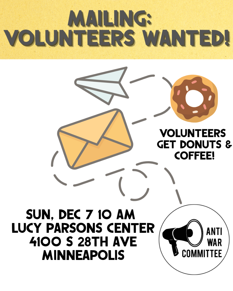 Sunday, February 22, 1- 3 pm, Lucy Parsons Center, 4100 28th Ave S, Minneapolis The Anti-War Committee is excited to present our 2nd annual Black Against Empire Panel for Black History Month on Sunday, February 22nd from 3:00pm to 5:00pm at the Lucy Parsons Center! This panel highlights the perspectives of black anti-imperialists in the…